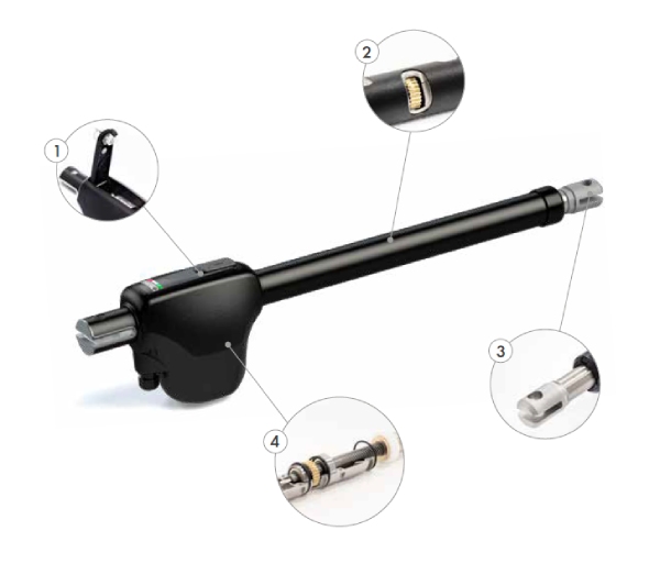 4 metros de longitud. El motor Monos es una solución simple y fácil de instalar ya sea en la hoja derecha o izquierda de la puerta, utilizando la misma versión que la batiente.